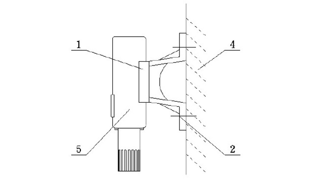 一种挂装式温湿度记录仪 属于温湿度监控技术领域 ;所要解决的技术问题是 :提供一种安装维护方便、测量准确的温湿度监控记录仪 ;采用的技术方案是 :安装支架的两端设置有安装孔,安装支架的顶部设置有挂钩式第一卡扣,螺栓安装在安装孔中将安装支架固定于墙面上,温湿度监控记录仪的背部设置有挂钩式第二卡扣 ;第一卡扣和第二卡扣配合将温湿度监控记录仪挂装在安装支架上 ;本实用新型适用于图书馆、档案管等需要温湿度监测的场所。 其特征在于 :安装支架(1)的两端设置有安装孔(2),安装支架(1)的顶部设置有挂钩式第一卡扣(3),螺栓安装在安装孔(2)中将安装支架(1)固定于墙面(4)上 ;温湿度监控记录仪(5)的背部设置有挂钩式第二卡扣 ;第一卡扣(3)和第二卡扣配合将温湿度监控记录仪(5)挂装在安装支架(1)上。